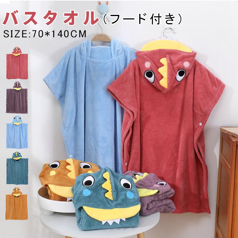 ベビータオル恐竜フード付き 子ども用バスローブ ポンチョ マント お風呂 プール ベビー 便利 柔らかい 超吸収性 出産祝い贈り物にもバスポンチョ バスタオル ビーチタオル プールタオル フード付き