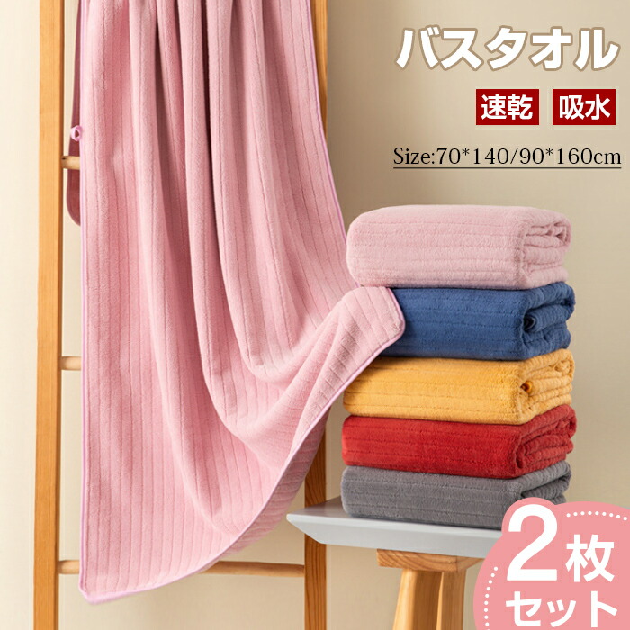 バスタオルタオルケット90*160cm70*140cm2枚セットバスタオルセットホテルスタイル縞柄大判厚めマイクロファイバー高速吸水速乾耐久性ふわふわ肌触りよい柔らかい無地ブランケットまとめ買い