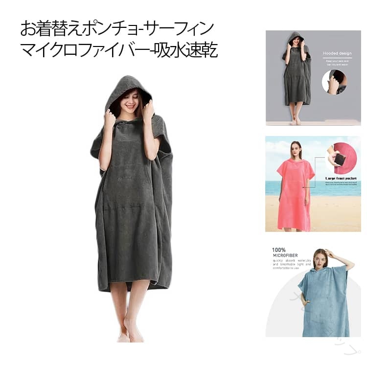 サーフィン 用 サウナ ポンチョ フード 付き タオル ワンオペ 速乾 バスポンチョ バスタオル 吸水 薄手 マイクロファイバー レディース メンズ 大人 着替え 着る タオ ママ