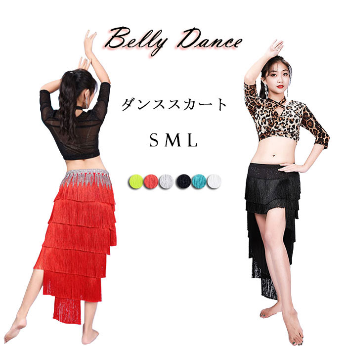 ベリーダンス 衣装 ダンススカート 全6色 レディースダンスウェア スカート 初心者向け タッセル ダンスウェア インナーパンツ付き レッスン着 フリンジ ラメ入り ステージ衣装 社交ダンス ダンス服