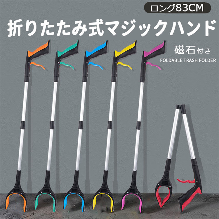 お助けハンド マジックハンド つかみ棒 折りたたみ 83cm 高所 軽量 使いやすい 滑り止めゴミ拾いトング ピックアップ ツール 万能 ロングハンド ゴミつかみ はさみ棒 棒 便利 グッズ ゴミ拾い