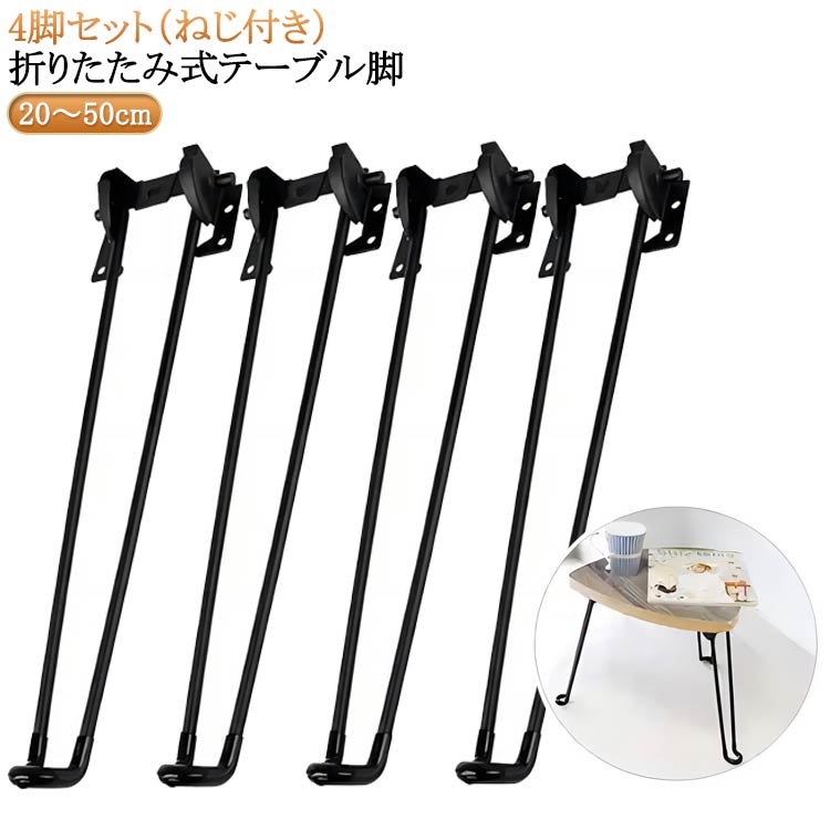 20~50cm パーツ 脚 テーブル 折りたたみ セット 脚のみ スチール 折り畳み 4本セット 座卓 DIY 4脚セット 鉄脚 ブラック 付け替え 台座 座卓用 テーブルの脚 机 ちゃぶ台