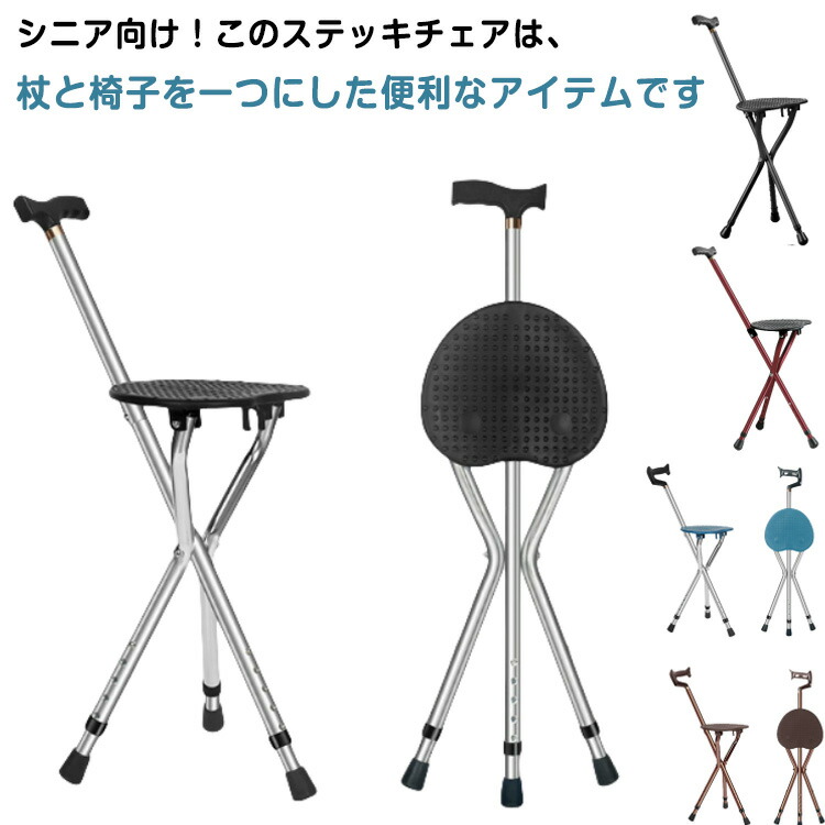 ステッキ チェアー 座れる杖 折りたたみ ステッキチェア 父の日 母の日 敬老の日 プレゼント 三脚 椅子 杖 高さ調節可能 軽量 介護 休憩 散歩 ハイキング 旅行 釣り シニア お年寄り