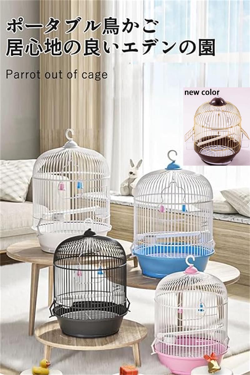 鳥かご 丸型 オカメインコ ケージ 鳥小屋 鸚哥 エサ入れ バードケージ ハンドル付き 文鳥 小さい とりかご インテリア 鳥籠 持ち運び おしゃれ 鳥 セット 移動 小鳥 セキ インコケージ