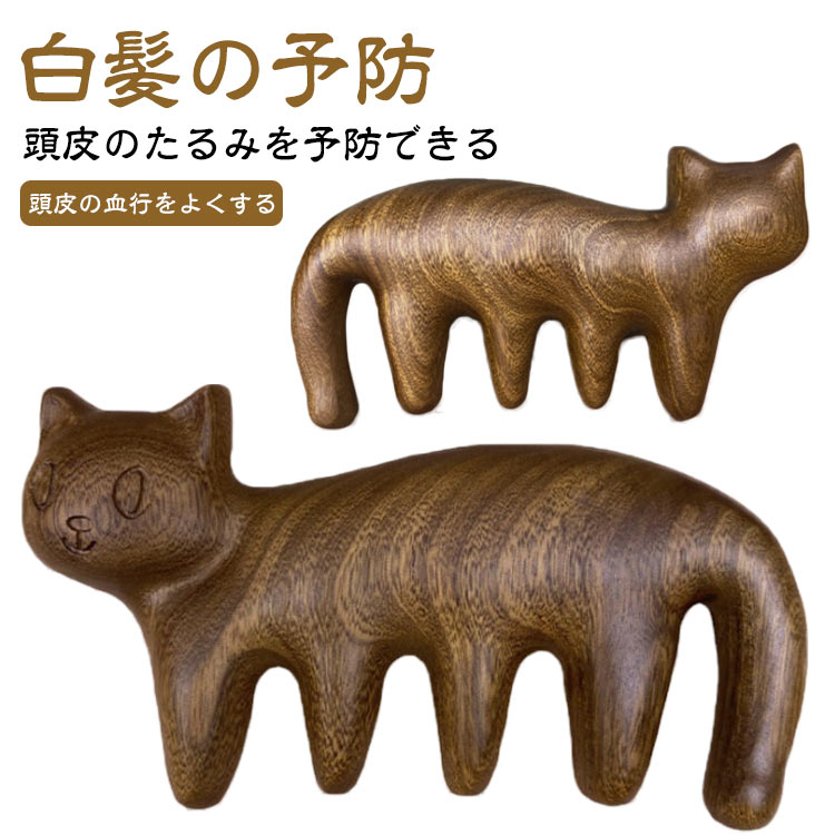 髪くし 櫛 クシ 木製くし マッサージくし かわいい ねこ