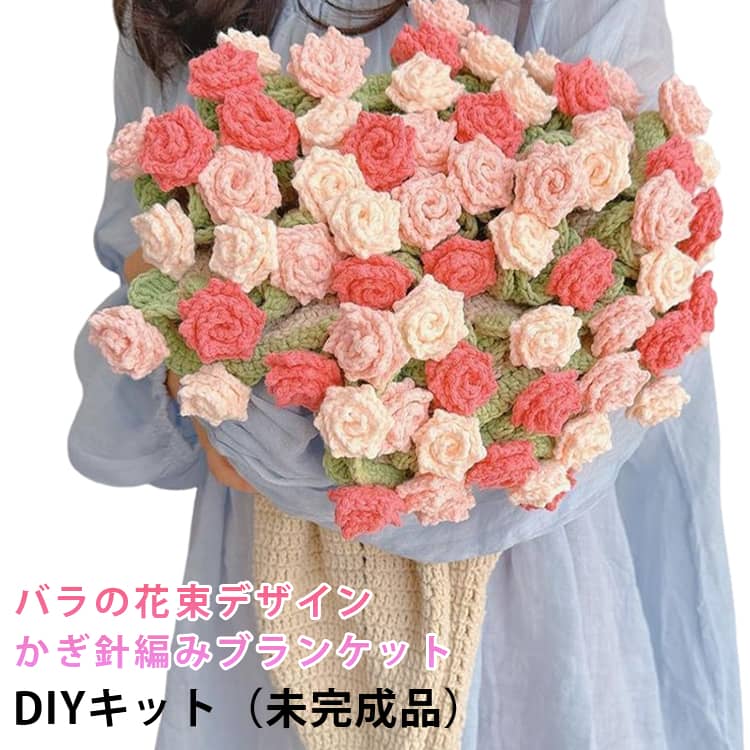 花束ブランケット バラの花束のブランケット かぎ針編みキット 花束ブランケット毛糸 未完成品 DIY 手作り ブーケ ブランケット キット 初心者向け バラ 柔らかい フラワーかぎ針編み 花 スズラン