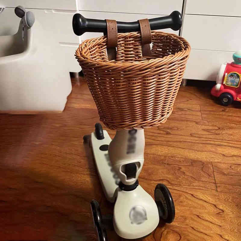 前掛けカゴ 前かご キックスクーター 前カゴ 自転車 キッズ ラタンバスケット 子供用 バランスバイク キックバイク キックボード フロントバスケット 編み上げ ラタン 装着簡単 バスケット