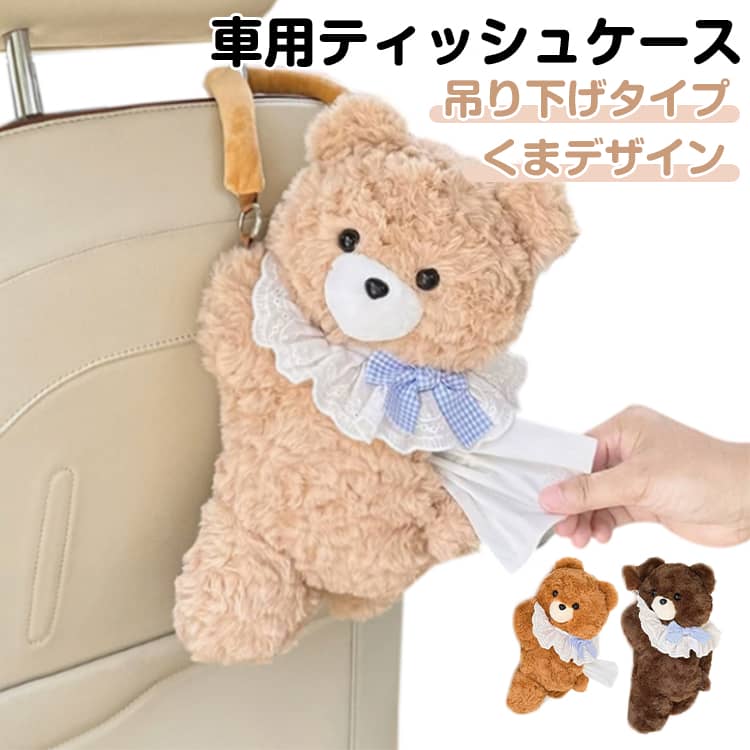 ティッシュケース クマ 車 収納ケース ぬいぐるみ 可愛い 動物 おしゃれ 癒し フワフワ 車内 車載 収納 プレゼント ギフト