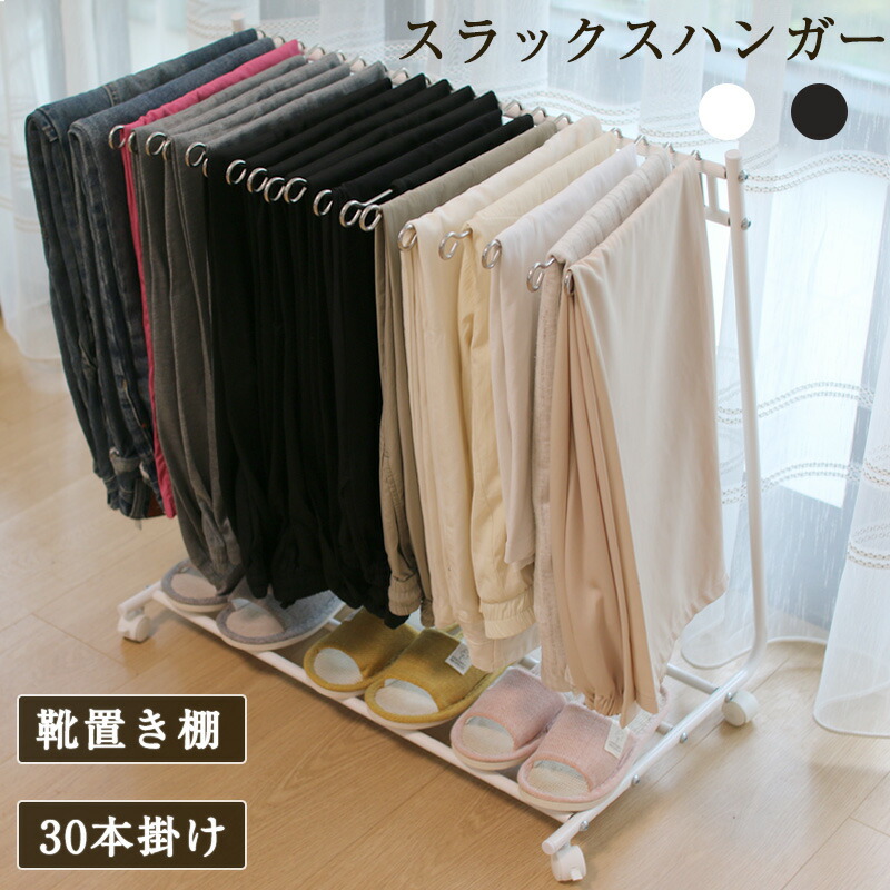 スラックスハンガー スリム 30本掛け ズボンラック ボトムラック ボトムス 収納 ズボン収納 ラック ズボンハンガー 省スペース 折り畳み 隙間収納 服収納 キャスター付き ハンガー パンツハンガー