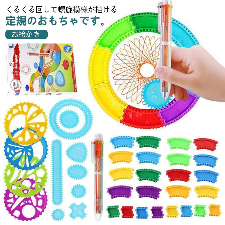 カラフル くるくる 定規 文房具 鉛筆 回して 円 幾何学 お絵かき デザイン 描く クルクル 輪 を で 便利 玩具 模様 柄 おもしろ ユニーク かわいい 枠