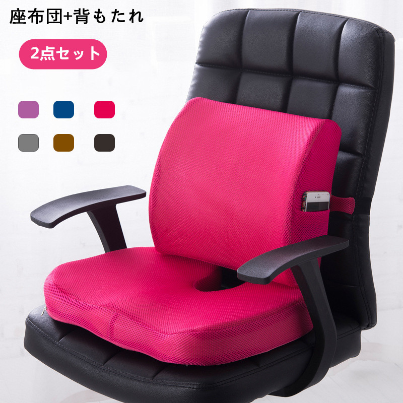 送料無料 座布団&腰クッション 2点セット 低反発 オフィス/車/自宅/車椅子