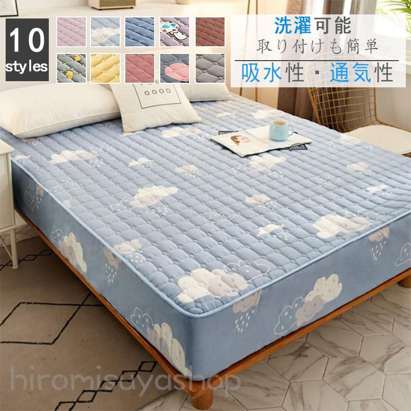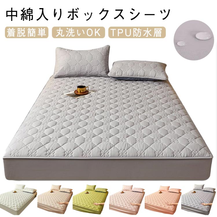 尿漏れ防止 中綿入り ダブル シングル 防水 ボックスシーツ ベッドカバー セミダブル パッド一体型 敷きパッド 寝具 着脱簡単 丸洗いOK マットレスカバー
