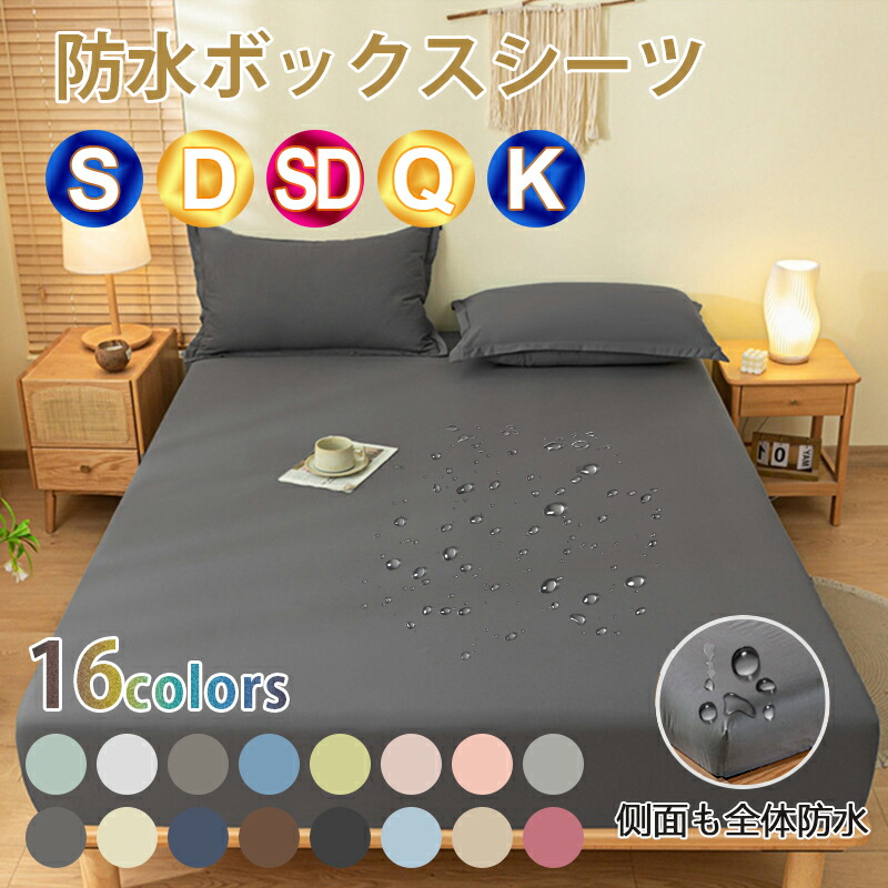 ボックスシーツ 防水 シーツ シングル セミダブル ダブル クイーン キングサイズ おねしょシーツ ベッドシーツ 防水ボックスシーツ マットレスカバー 防水シーツ ベッドカバー 快眠 防ダニ ボックス