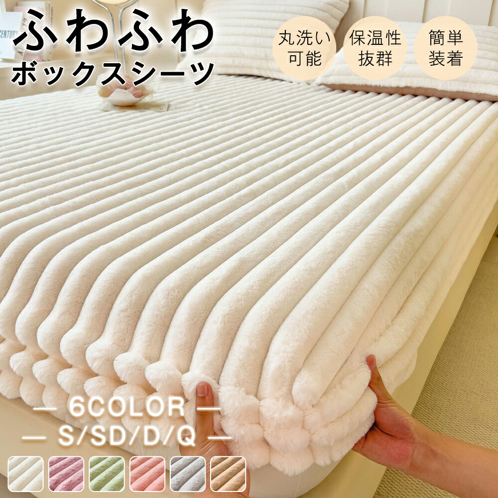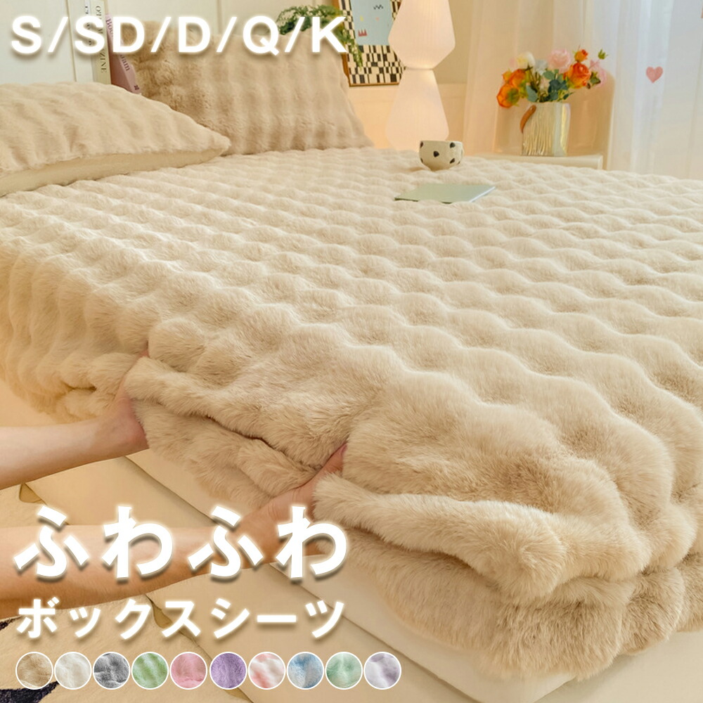 ウサギに抱きついたみたい!ふわふわウサギ毛ボックスシーツ、360° ゴムでズレないし、丸洗いも !保温して静電気も防ぎ、かわいいデザインで毎晩ウサギみたいに幸せな眠りを~