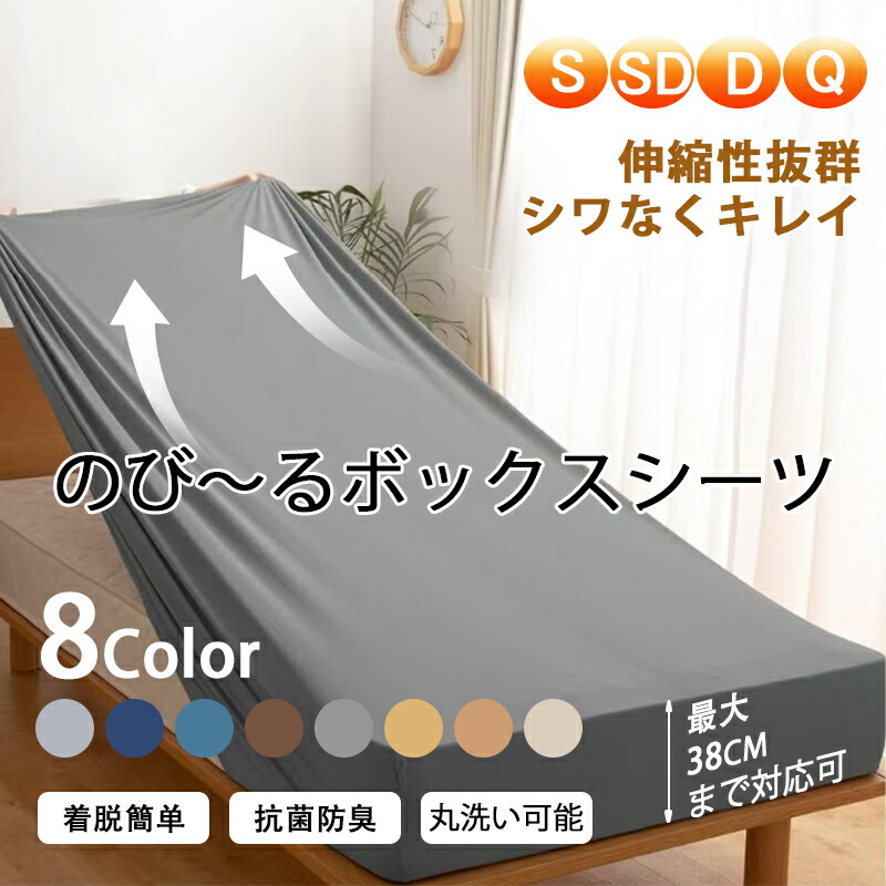 ボックスシーツ のび~るシーツ 伸びる シングル セミダブル ダブル クイーン 敷布団シーツ マットレスカバー シーツ ベッドカバー 高密度生地 洗える 吸汗速乾 おしゃれ あったか 夏 秋 冬 春