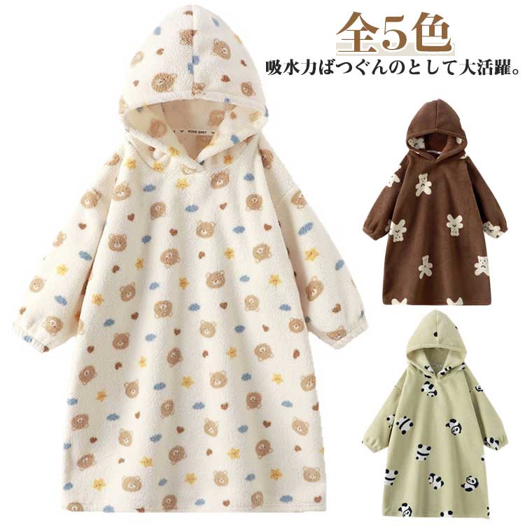 バスポンチョ 速乾 着る毛布 バスタオル キッズ バスローブ 吸水 寝巻き うさぎ ワンピース 部屋着 子供服 もこもこ あったか 秋冬 ルームウェア 長袖 可愛い 湯上がり