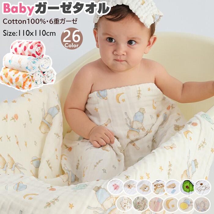 【自由に選べる】ガーゼ バスタオル 赤ちゃん ベビー 6重 4枚セット 綿100% 105×105 子供 大判 湯上がり 速乾 通気性 吸水性 幼稚園 保育園 ガーゼケット ふわふわ 柔らかい