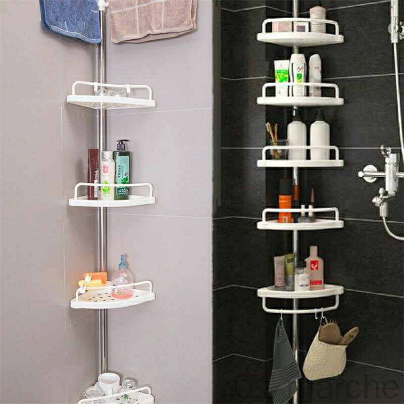 コーナーラック バスラック 突っ張り つっぱり 4段 5段 浴室 収納 シェルフ 棚板 工具不要 つっぱり棒 タオルバー 水切り穴 フック付き 水回り スリム 省スペース 便利で頑丈な多機能 整理整頓
