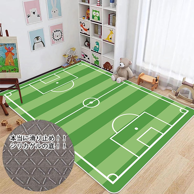 キッズラグ 洗える サッカーラグ トレーニング 室内 複数サイズ ビッグ 約200*400 防音 大判 長方形 サッカー場柄 遊び ラグ カーペット 子供用マット 洗える 滑り止め付