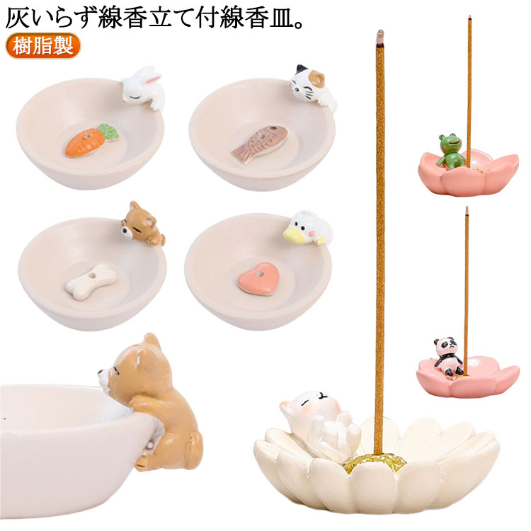 線香立て付 線香皿 犬 猫 お香立て 線香差し 灰不要 灰いらず 香炉 樹脂製 ミニ 小型 香皿 線香差 線香立 お盆 犬型 猫型 かわいい おしゃれ ペット用 ペット仏壇 ペット供養 ペット仏 仏具