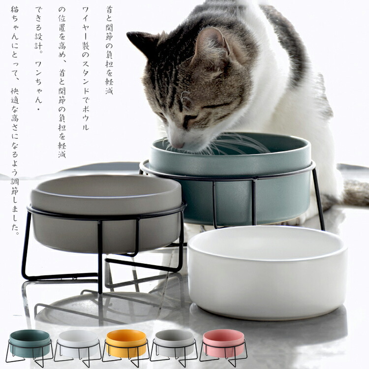 食べやすい 猫 食器 陶器 フードボウル 犬 犬用 餌入れ スタンド 脚付 エサ入れ 水入れ 猫用 ねこ 滑り止め ウォーターボウル 水飲み 大容量