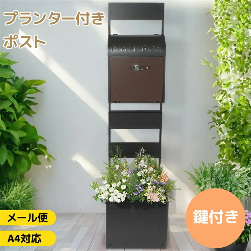 ポスト プランター付き 置き型 ラッグ 玄関前 傘立て 収納 スタンドポスト おしゃれ 北欧 一戸建て用 郵便ポスト 置き型ポスト スリム 鍵付き 錠 メールボックス 新聞受け 郵便受け