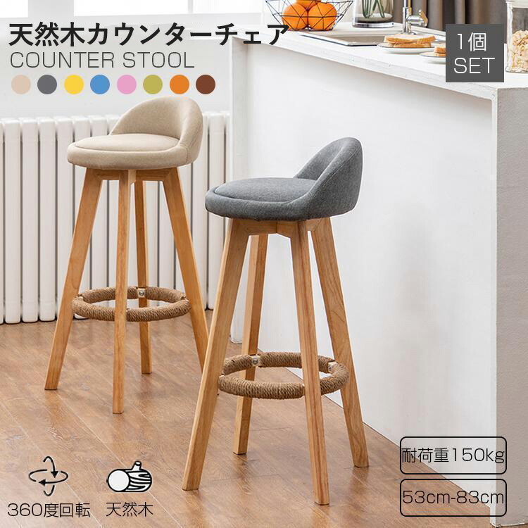 カウンターチェア 木製 360度回転 足置き付き ウンタカー椅子 キッチン椅子 天然木 ハイスツール 居酒屋 軽量 バー椅子 ファブリック素材 生地 カフェ