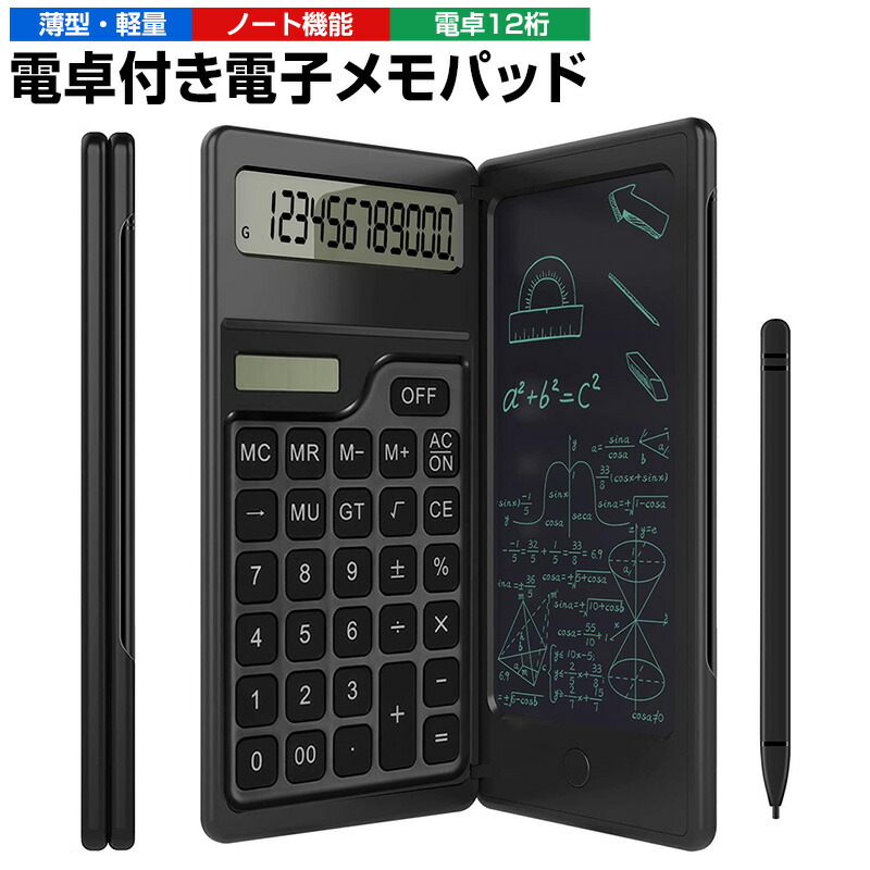 電卓付き電子メモパッド 電子メモ 電子メモパッド 電卓 電子メモ帳 デジタルメモ タッチペン付き 一台3役 おしゃれ 手書きメモ デジタルペーパー デジタルメモパッド 消去機能 計算機 電子 持ち運び