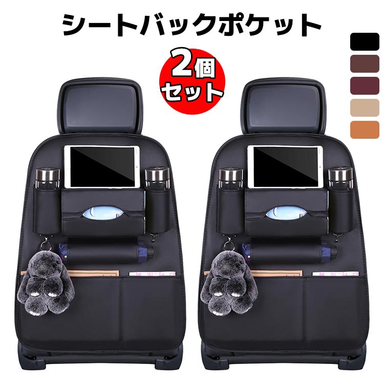 お手入れ簡単のレザー生地 マルチ収納 車シートバックポケット 取り付け簡単