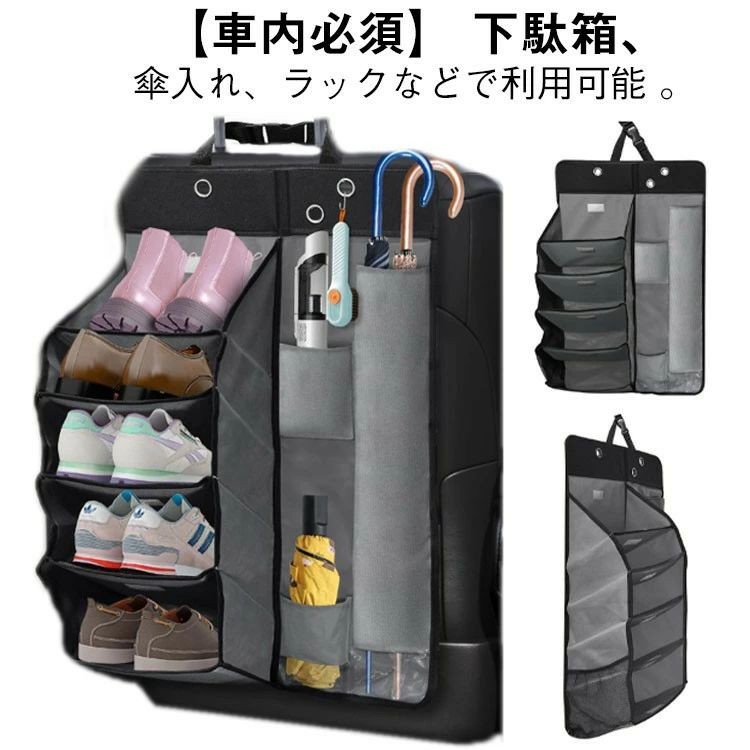 車用シューズラック 傘入れ 5段 折りたたみ式 車内収納整理 ハイエース車 シートポケット 多車種対応