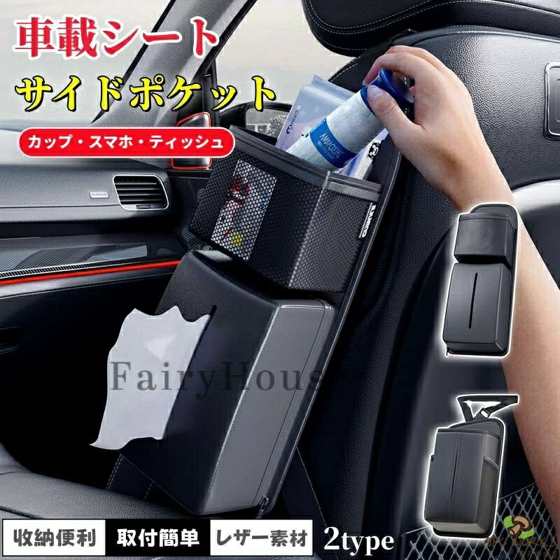車用ティッシュケース 車 シートサイド ティッシュホルダー PUレザー 箱ごと入る 小物収納 サングラス収納袋付き シートサイドポケット 収納ポケット シートバックポケット カーアクセサリー