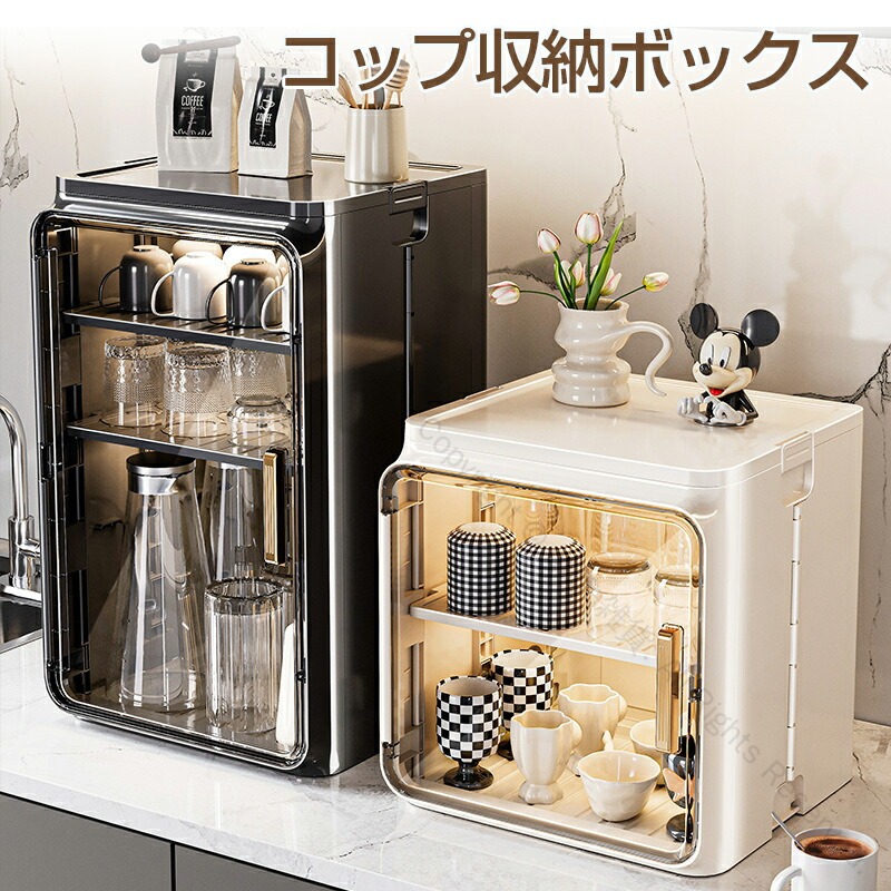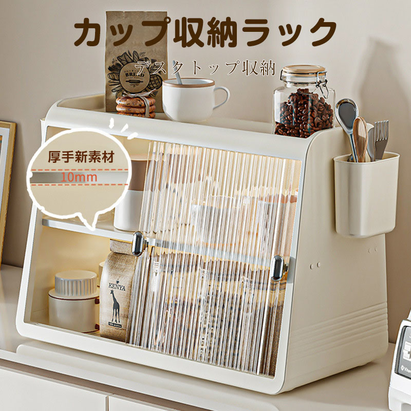 キッチン収納 食器棚 卓上 ミニ食器棚 カップスタンド カップ収納 コップラック ミニカップボード 卓上収納コップ 収納棚 防塵 防湿 お茶碗収納ボックス お手入れ簡単 大容量カップ 扉付き卓上食器棚