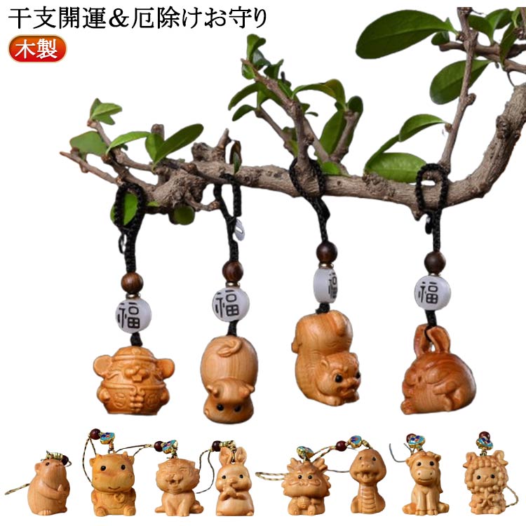 開運 厄除け 御守り ストラップ 干支 鼠 牛 虎 兎 竜 蛇 馬 羊 猿 鶏 犬 豚 木 可愛い かわいい おしゃれ 木製 プレゼント 贈り物 手作り おしゃれ キーホルダー モチーフ 送料無料