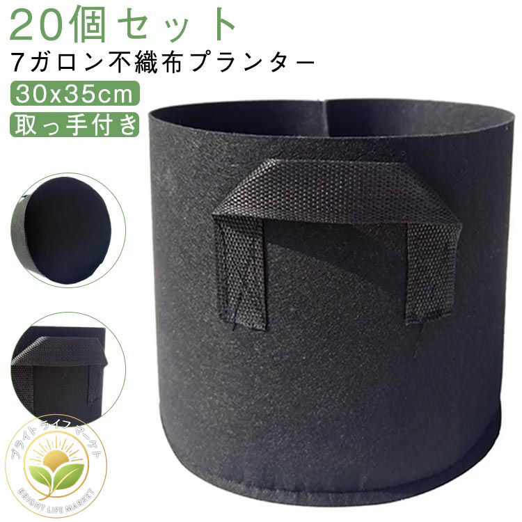 不織布ポット 7ガロン プランター ベランダ菜園 布鉢 30x35cm 取っ手付き フェルト 栽培袋 野菜 深型 不織布プランター 植え袋 植木鉢 フェルトプランター 軽量 家庭菜園 20個セッ 軽い