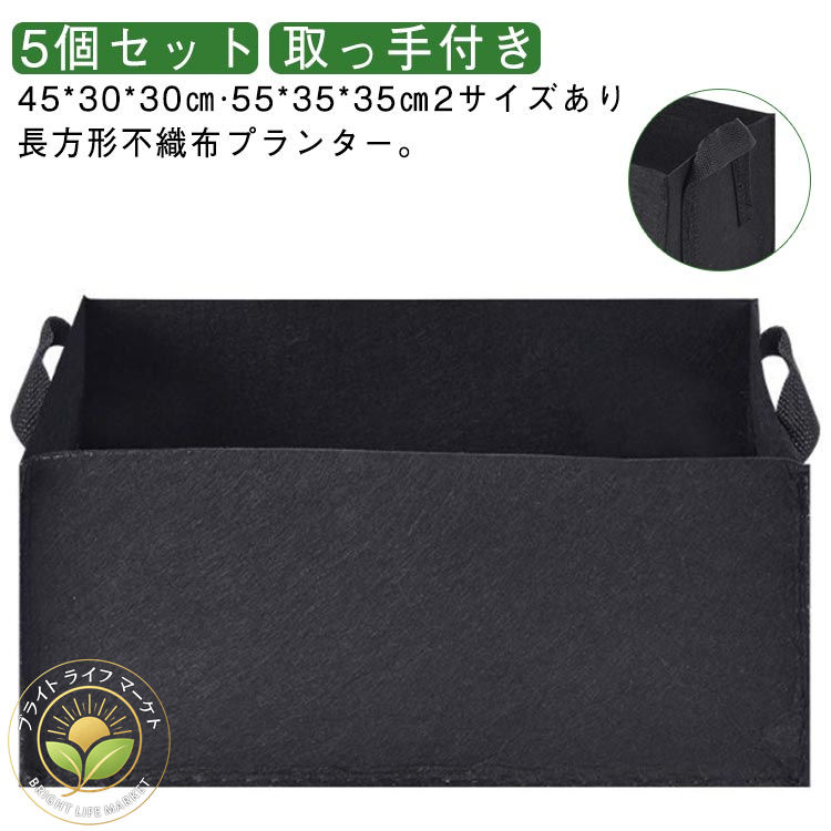 軽い 軽量 フェルトプランター 布鉢 プランター 取っ手付き 5個セット ガーデニング 栽培袋 長方形 大 野菜 深型 不織布ポット 植木鉢 家庭菜園 フェルト 花 植 ベランダ菜園
