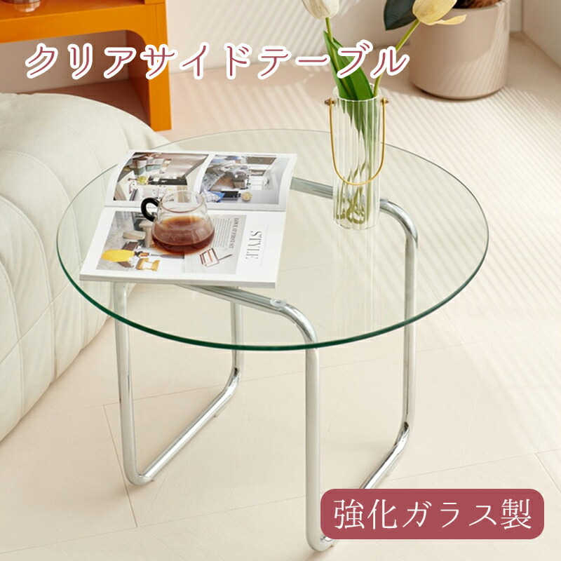 ラウンドテーブル クリア ローテーブル センターテーブル ガラステーブル 強化ガラス おしゃれ リビング 一人暮らし ガラス天板 スチール脚 サイドテーブル 円形 透明 机 カフェテー 丸型