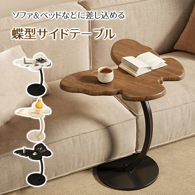蝶型サイドテーブル ソファサイド C字型 ベッドテーブル コーヒーテーブル 北欧 合板 ミニテーブル 省スペース コンパクト おしゃれ 一人暮らし スチール脚 ナイトテーブル リビング