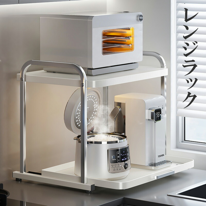 レンジラック レンジ上 ラック トースターラック キッチンラック 大型レンジ対応 引き出し スライド棚 付 レンジ台 電子レンジラック 炊飯器ラック 調味料棚 電子レンジ置場 スペース 2段