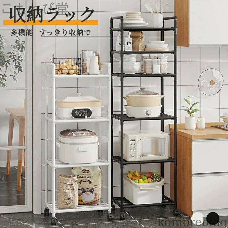 レンジラック キッチンラック キャスター付き 収納ワゴン ストッパー 取っ手付き キッチン レンジ台 炊飯器 収納棚 飾り棚 調味料ラック フライパンラック クローゼット 雑貨置き 角 ガーデンラック