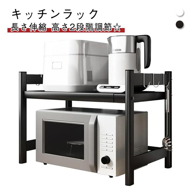 レンジ上ラック 伸縮 幅40~64cm レンジ上 ラック キッチンラック レンジ台 レンジ棚 1段 キッチン収納 大型レンジ対応 電子レンジ台 トースター レンジ置台 カウンター上 収 炊飯器