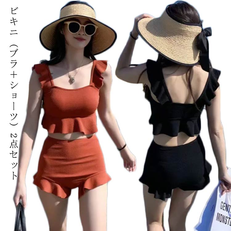 水着 フリル 女の子 高校生 10代 レディース タンキニ 体型カバー ハイウエスト 大きいサイズ セパレート ビキニ ショートパンツ セットアップ 上下セット 30代 40代 水 20代