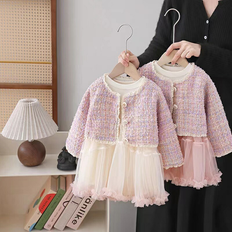 キッズ 子供服 ジャケット チュールワンピース 2点セット 入学式 卒園式 セットアップ ツイードジャケット 子供服可愛い こども フォーマルセットアップ ツイード 女の子セットアップ 子供 結婚式