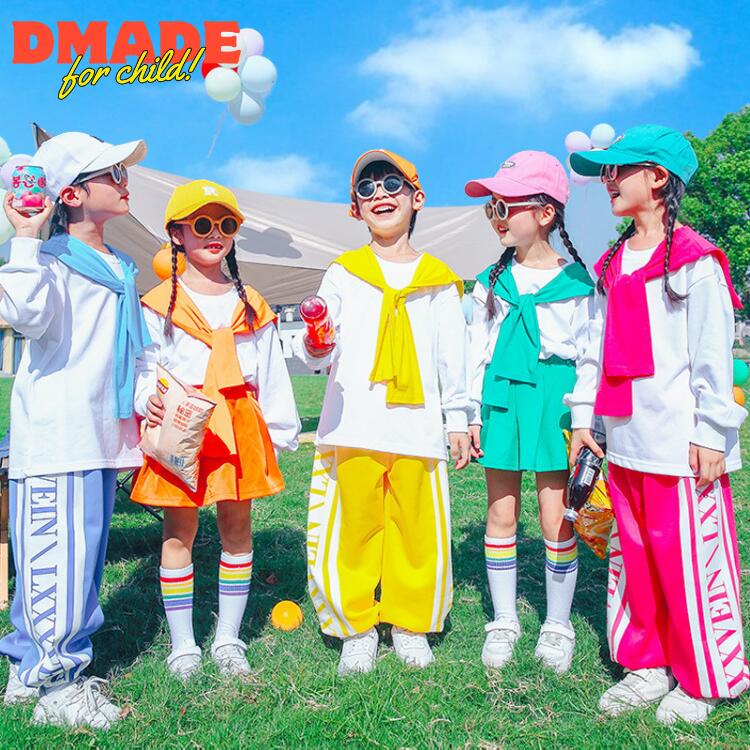 子供服 ヒップホップ ダンス衣装 5色 長袖 半袖 キッズ イベント お揃い セットアップ 男の子 女の子 韓国ファッション トップス スカート 肩マント ダンスウエ パンツ