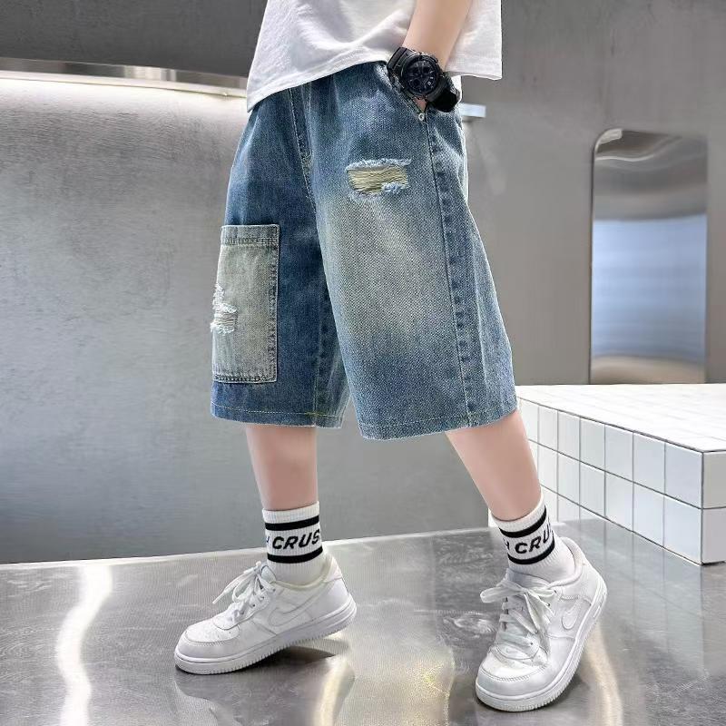 デニムパンツ ハーフパンツ 子供服 夏 キッズ 子供 ジュニア 男の子 薄手 デニムハーフパンツ デニム ゆったり おしゃれ カジュアル アメカジ 七分丈 ダンス衣装 ズボン 短パン デニム半ズ 夏服