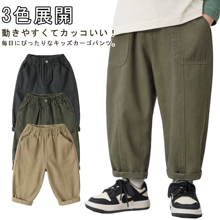 キッズ カーゴパンツ ロングパンツ 長ズボン 男の子 女の子 ワイドパンツ 無地 子供服 ベビー服 ボトムス ワークパンツ チノパン イージーパンツ