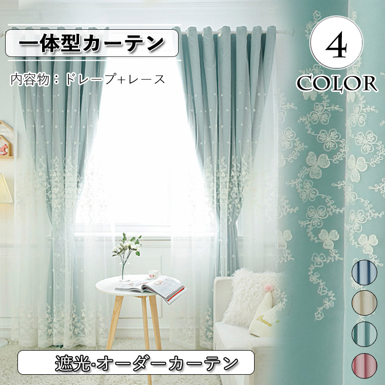 カーテン 遮光 レース おしゃれ 北欧 オーダー 一体型 レースカーテン ブルー ピンク グリーン ベージュ UVカット 遮像 出窓 シンプル 花柄 柄 お姫様 ベッドルーム ホテル 待 姫係