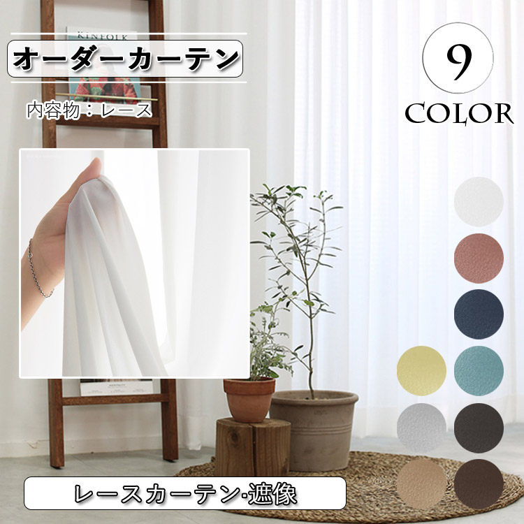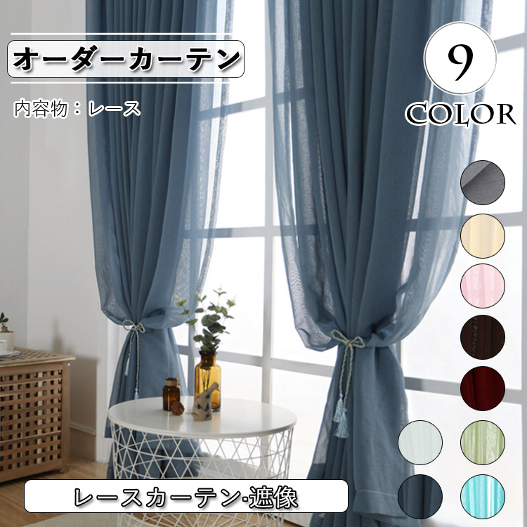 オーダーカーテン レース オーダー 目隠し 北欧 ホワイト イエロー グレー ブラウン ブルー レッド 水色 遮像 出窓 ベッドルーム リビング 新居 バルコニー かわいい 無地 エレガント お姫様