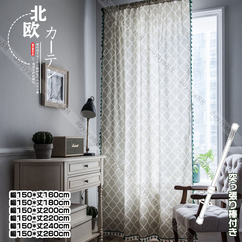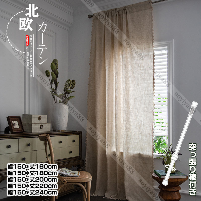 綿麻 カーテン 間仕切り 突っ張り棒付き 半分遮光 目隠し 窓 ドア 仕切り 冷気遮断 断熱 洗える ins風 簡約 寝室 階段 遮断 ロング 居間