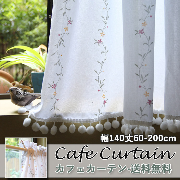 カフェカーテン おしゃれ ロング ロング丈 モダン 田園風 ホワイト 既製品 小窓 遮像 小窓用 ベッドルーム 部屋アレンジ リビング キッチン エレガント シンプル 植物柄 プリント柄 毛玉飾 花柄