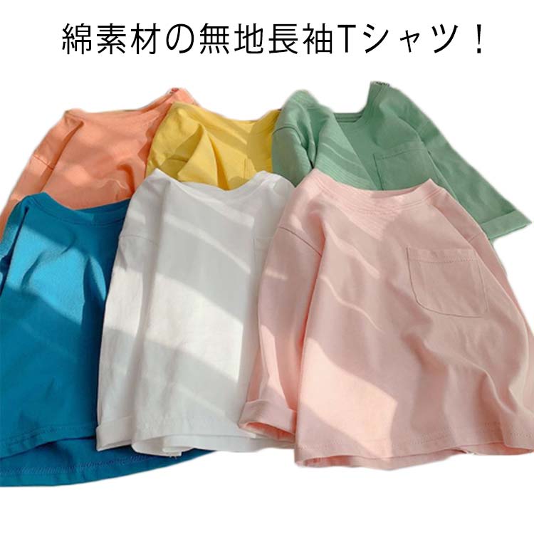 子供服 Tシャツ 長袖 ロンT キッズ 男の子 女の子 ポケット付 長そで 長袖tシャツ 無地 春 秋 薄手 綿 コットン カットソー インナー スウェット クルーネック 入園 入学 トップス 通園